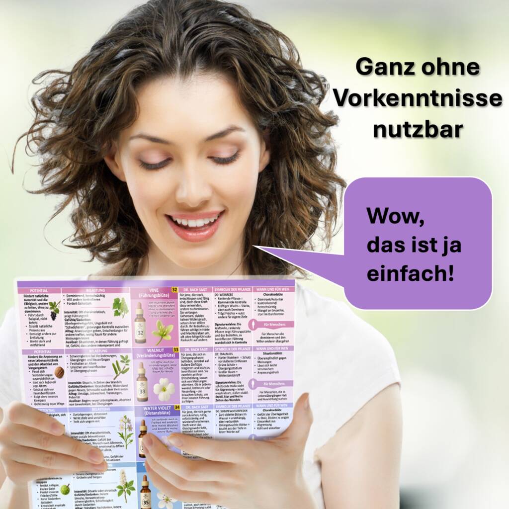 - Klarer Überblick: Leitsymptome, Wirkung & Affirmation je Blüte