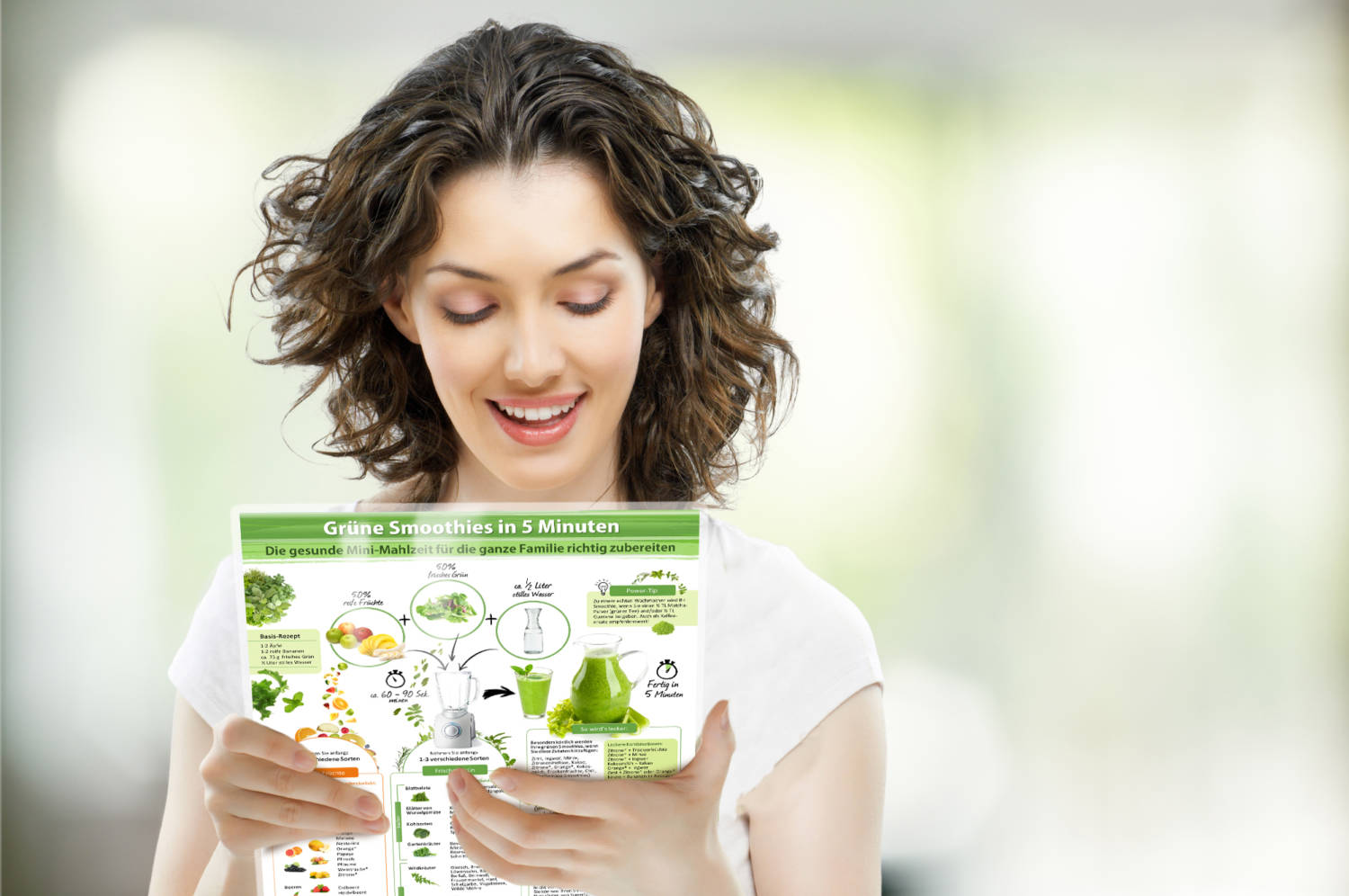 In weniger als 5 Minuten servierst Du Dir und Deinen Lieben die pure Gesundheit aus dem Glas. Damit Du das leistungsstarke Getränk richtig zubereitest, bietet unsere neue Grüne-Smoothie-Rezept-Karte eine komplette Schritt-für-SchrittAnleitung, mit allem, was Du benötigst, um sofort loszulegen.