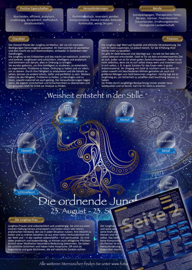 Zu all diesen Fragen haben wir für jedes der zwölf Sternzeichen eine kompakte, übersichtliche und gut verständliche Sternzeichen-Karte entwickelt, auf der Du Dein psychologisch-astrologisches Profil zu allen wichtigen Themenbereichen Deines Lebens findest!